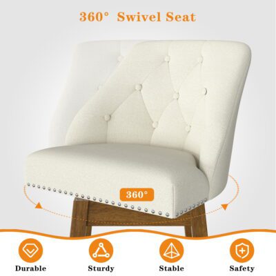 Elevate your kitchen with luxury adjustable bar stools (Set of 2). Featuring quilted upholstery, gold glam accents, swivel, and hydraulic height adjustment.