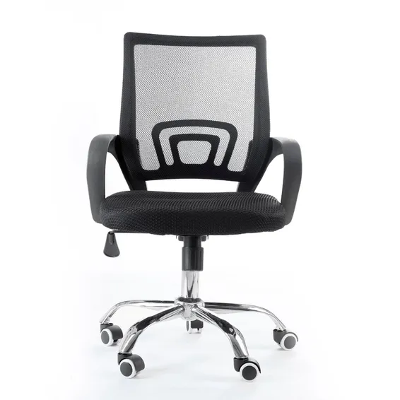 Material: Mesh backrest and fabric seat. Plastic arms. Aluminum legs. Nylon wheels.