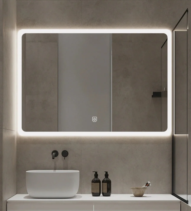 QandAHome-Lilly 80cm LED bathroom mirror create a sophisticated statement with the QandAHome-Lilly 80cm LED bathroom mirror, an impressive 600x800mm horizontal design that combines clean minimalist aesthetics with intelligent functionality. The sleek frameless construction with frosted edge detail creates a contemporary floating appearance that integrates seamlessly.Weighing 8kg, The intuitive dual touch sensors control both lighting brightness and the integrated defogger function, ensuring crystal-clear visibility regardless of bathroom humidity levels. Perfect for mounting above double vanities or wide single vanities, this mirror enhances both the visual appeal and practical functionality of your space with its substantial horizontal presence and customizable illumination.