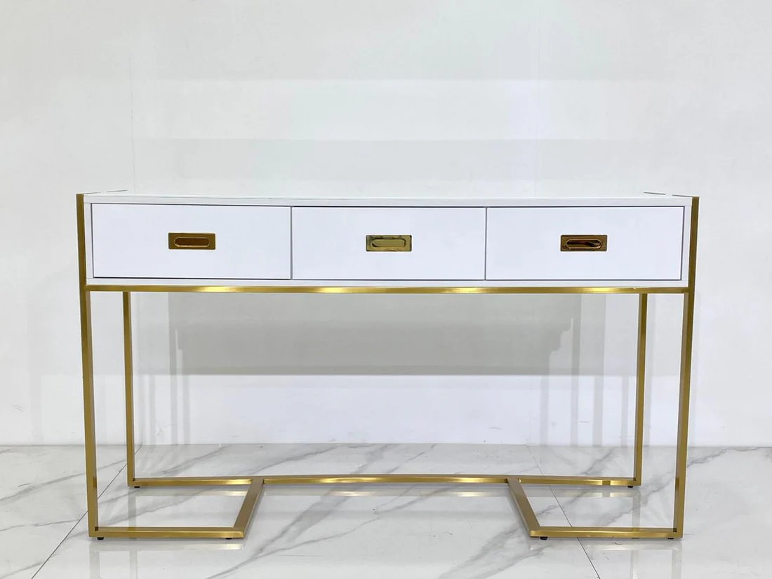 Elevate your living space with the MARE Console Table, a harmonious fusion of gold, glossy white mdf. Its durable construction guarantees years of enjoyment, while its versatile design allows for various uses. The ease of maintenance and contemporary styling make this console table an embodiment of both form and function, adding an extra layer of sophistication to your home. Make a statement with the MARE Console Table and experience the perfect blend of elegance and practicality.